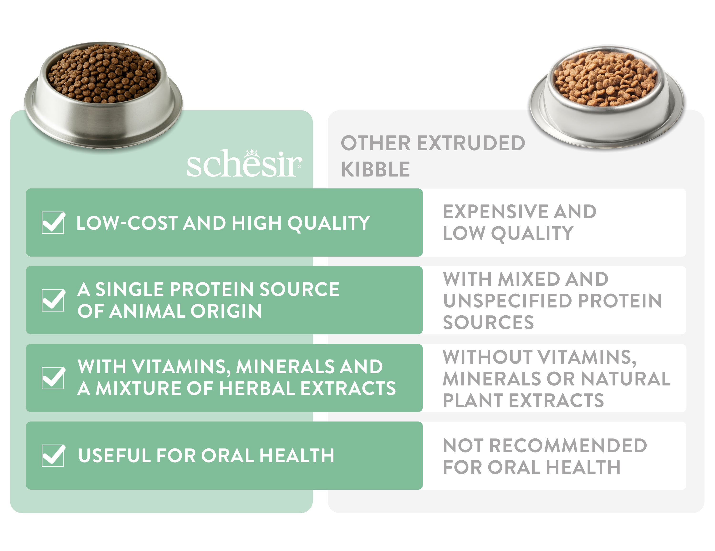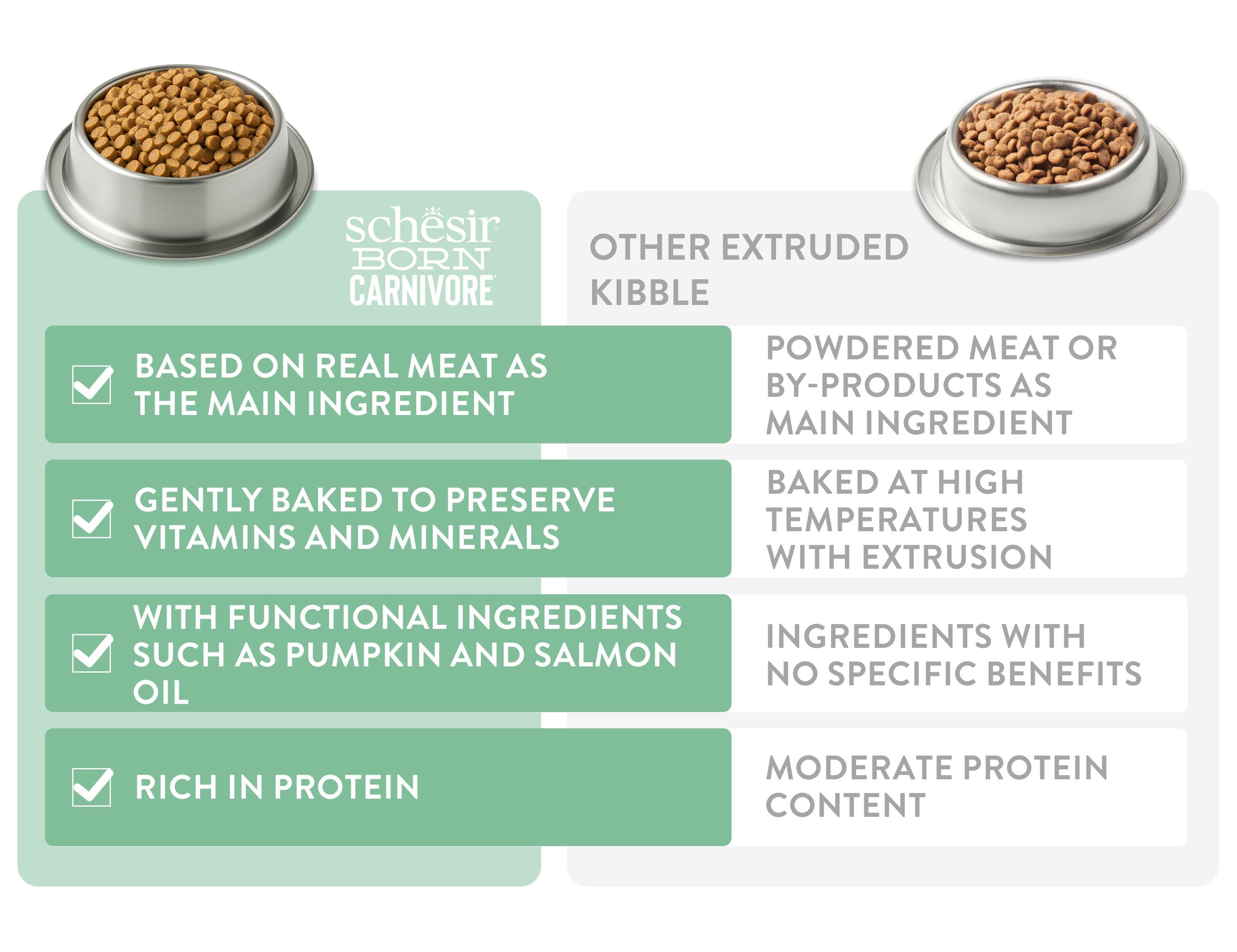 Real quality is immediately recognisable. Kibble made of real meat as the main ingredient, gently baked to preserve the vitamins and minerals. A natural texture and intense taste.