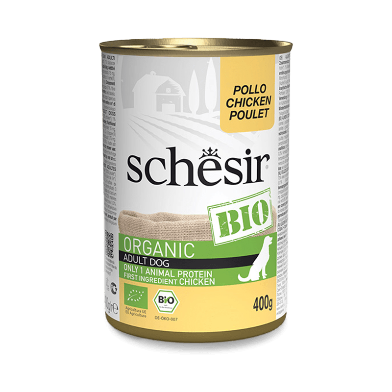 Schesir Bio es la gama de alimentos húmedos poco procesados, completos, equilibrados y certificados como biológicos por parte de entes certificadores reconocidos y autorizados por las competentes autoridades europeas. Cada alimento tiene como primer ingrediente la unicidad del origen animal de la receta.