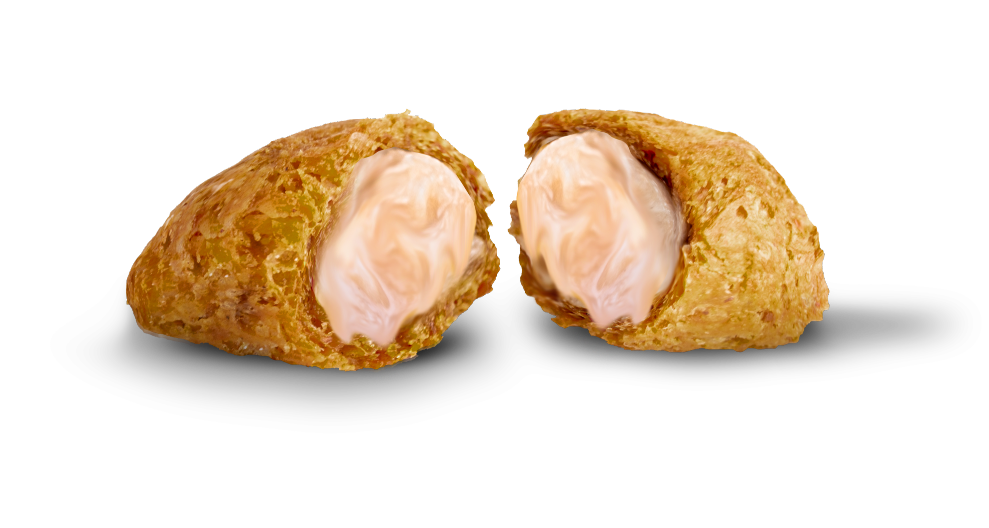 - Deux textures : croustillante à l'extérieur et onctueuse à l'intérieur, avec une garniture fondante et irrésistible.